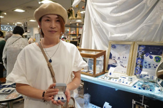 佳子さまが着用して話題になったアクセサリー「青の花しずく」の作者が現在、近鉄百貨店草津店(草津市渋川1)で同作品を展示している。