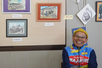 草津市在住の画家・深田宏(フカッチ)さんの個展「くさつ10景 名所旧跡を描く」が11月13日、喫茶「gig(ジイジ)」(草津市東草津1)の敷地内に新設した「画廊アミーゴ」で始まった。