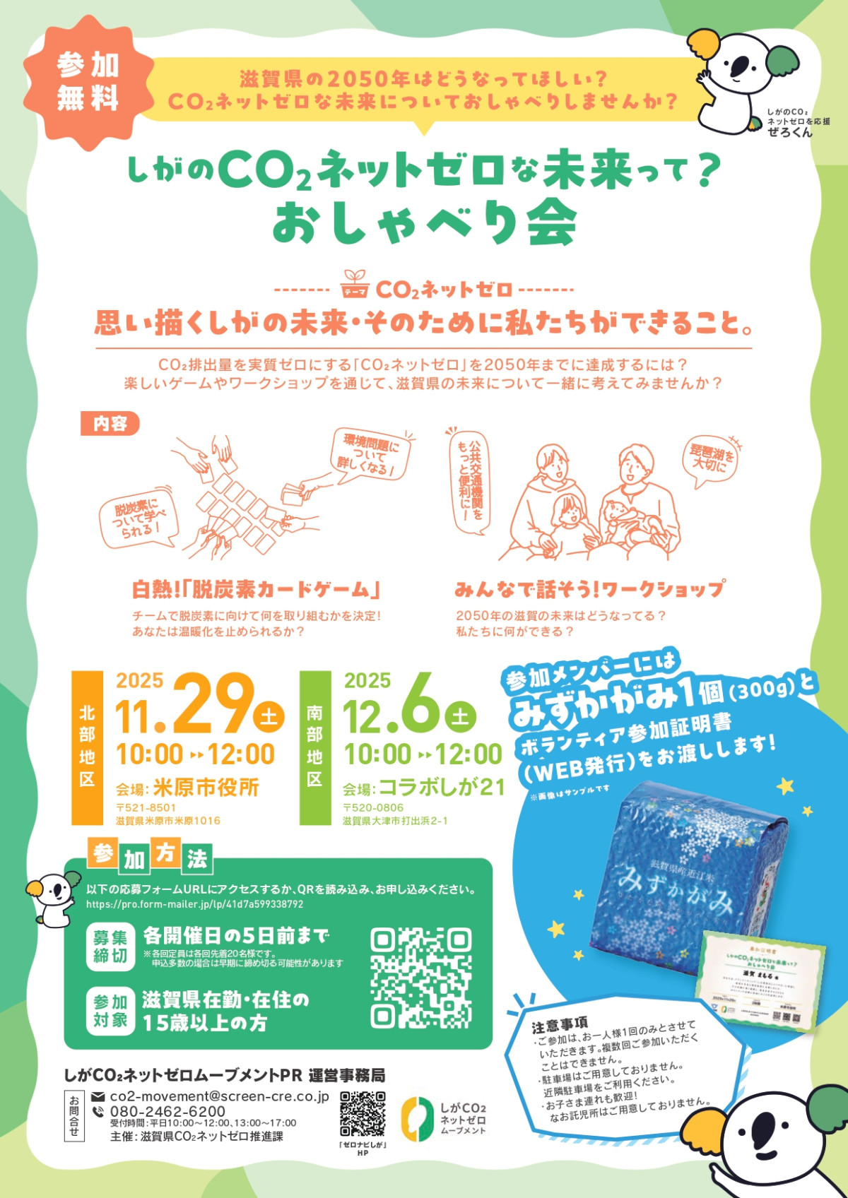 大津市で「しがのCO2ネットゼロな未来って?おしゃべり会」が開催される