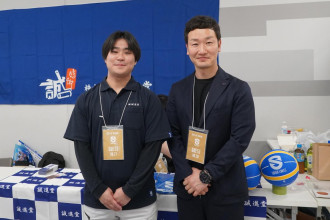 外壁・屋根塗装などの住宅リフォーム事業を手がける誠進堂(大津市梅林1)が4月22日、滋賀レイクスの試合会場で新入社員によるブースを出展した。