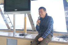外壁・屋根塗装などの住宅リフォーム事業を手がける誠進堂(大津市梅林1)が4月22日、滋賀レイクスの試合会場で新入社員によるブースを出展した。