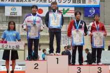 女子62キロ級決勝は滋賀県の屶網選手と世界選手権優勝の尾西桜選手(東京)との対戦となった。1-8とリードされた屶網選手は試合時間残り57秒で逆転のフォール勝ちを収め、優勝した。屶網選手は「点差があったので焦っていたが、セコンドから『大丈夫』と言ってもらって、自分のレスリングができた。小さな子どもの声援も聞こえて力になった」と話した。