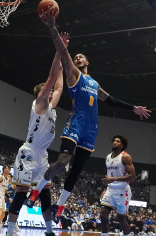 立ち上がりは大阪のペースで試合が進みリードを許す。シュート確率が上がらない中、全員でオフェンスリバウンドを拾い続け、粘り強いディフェンスで徐々に点差を詰める。会場の大声援を受け、3クオーター(Q)終盤から4Q前半にかけてさらにディフェンスの強度を高める。攻撃のペースをスローダウンさせ24秒バイオレーションを3回誘発。バイオレーションとは攻撃側のチームが24秒以内にシュートしてボールをリングに当てないと相手チームに攻撃権が移る違反のこと。4Q開始5分22秒まで得点を許さず、10-0のランで逆転。大阪に追い付かれ、70-70の同点で迎えた試合時間残り3.8秒、トーマス・ウィンブッシュ選手がファウルを受け、フリースローを2本獲得する。1本目を沈め、2本目をわざと外すと、リバウンドを拾った大阪の選手がパスミスし、試合終了。71-70で勝利した。