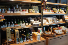 店内には滋賀県の土産を販売するスペースを設け、一部の日本酒とふなずしなどを販売。試飲・試食してから土産を購入できるようにした。