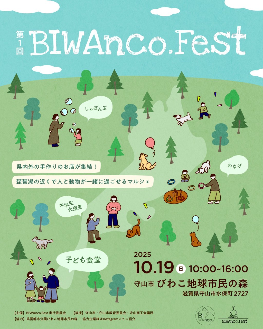 人と犬のためのイベント「BIWAnco.Fest(ビワンコフェスト)」が10月19日、びわこ地球市民の森出会いのゾーン(守山市洲本町)で初開催される。