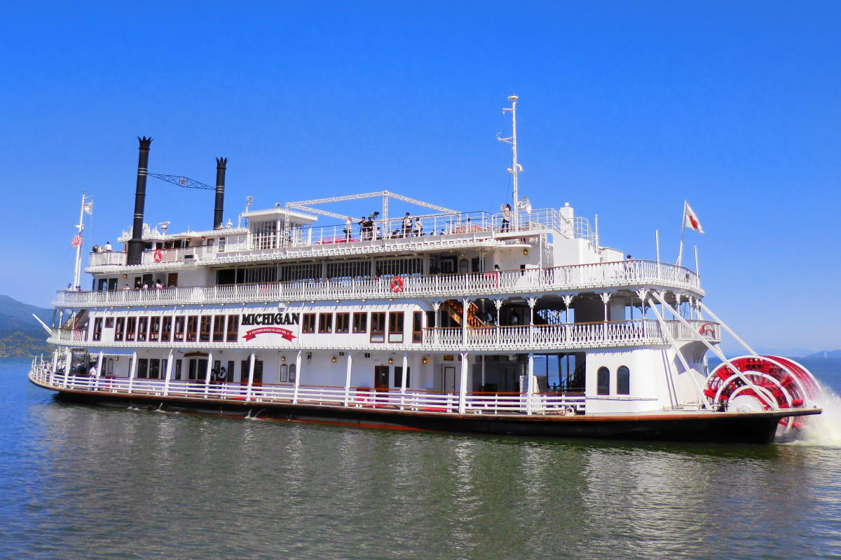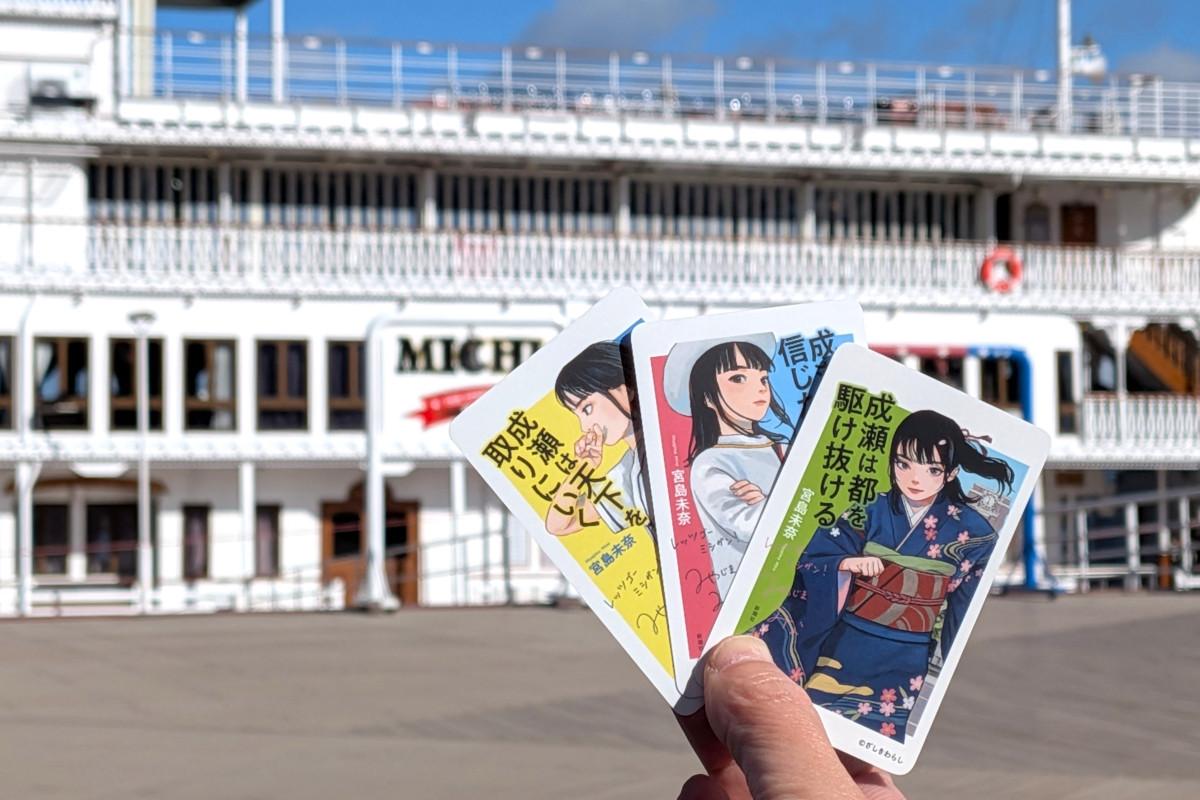 琵琶湖汽船(大津市浜大津5)が現在、大津市在住の宮島未奈さんの小説「成瀬は都を駆け抜ける」の出版を記念したコラボキャンペーン企画「レッツゴーミシガン」を行っている。