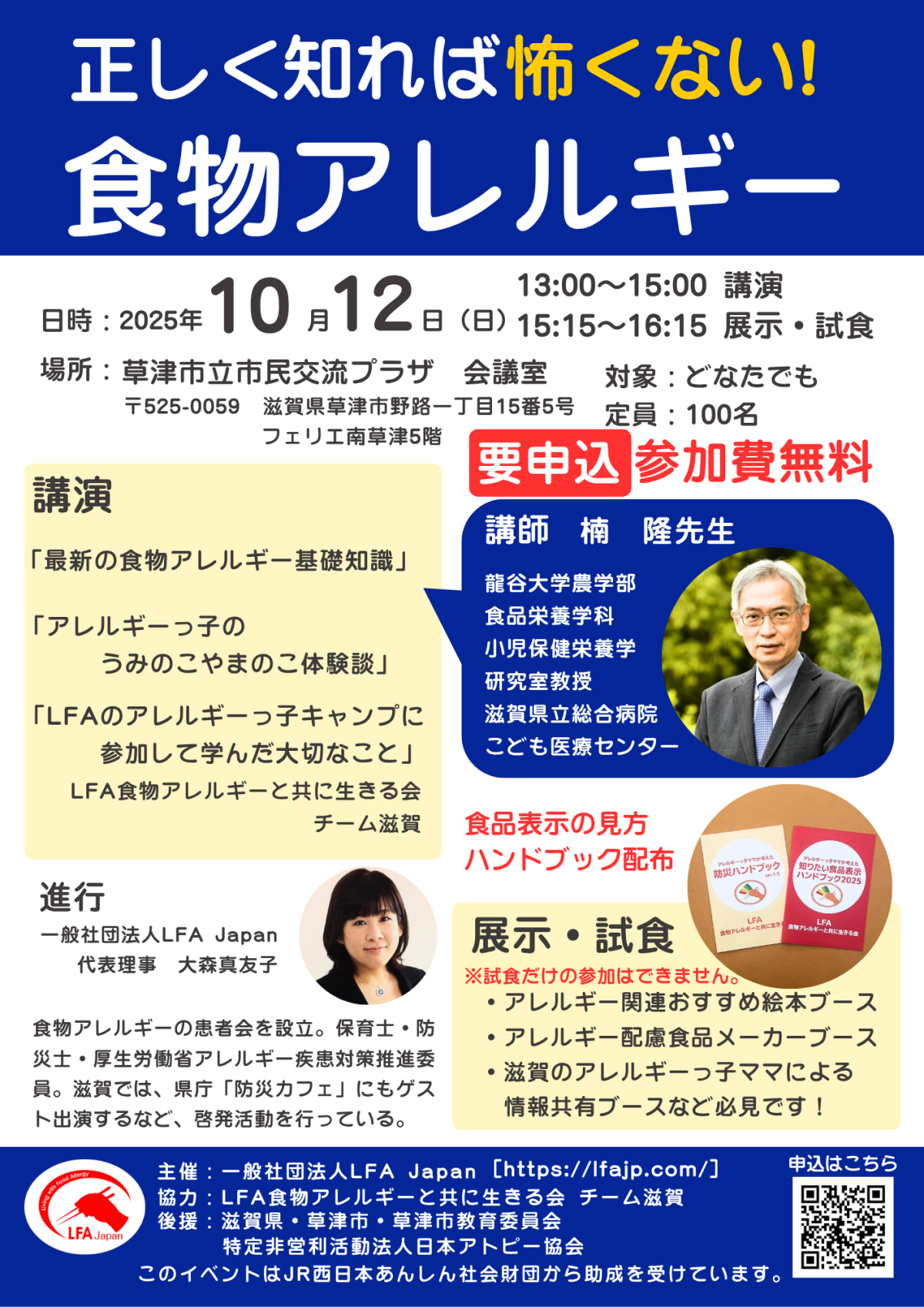 「正しく知れば怖くない!食物アレルギー」が10月12日開催される