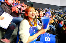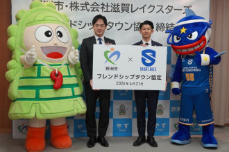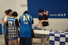 外壁・屋根塗装などの住宅リフォーム事業を手がける誠進堂(大津市梅林1)が4月22日、滋賀レイクスの試合会場で新入社員によるブースを出展した。