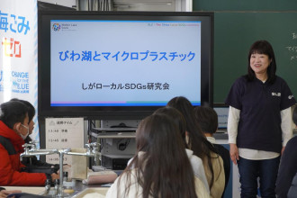 環境について考えるマイクロプラスチック特別授業が2月18日、守山市立速野小学校(守山市木浜町)で開かれ、5年生111人が参加した。