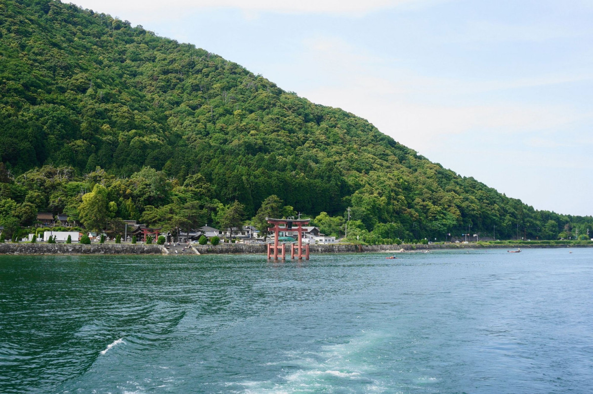 豊臣秀頼ゆかりの近江最古の大社「白鬚神社」の湖上大鳥居を参拝する(写真提供=琵琶湖汽船)