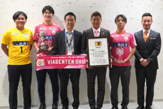 滋賀県社会人サッカー1部リーグ所属の「ヴィアベンテン滋賀」が10月30日、守山市森中高史市長を表敬訪問し、第32回全国クラブチームサッカー選手権大会で準優勝したことを報告した。