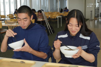 びわこ成蹊スポーツ大学(大津市北比良)が滋賀の特産品である近江牛を使った特別メニューの提供を12月2日、展望レストラン「Lake Crest」で学生向けに始めた。