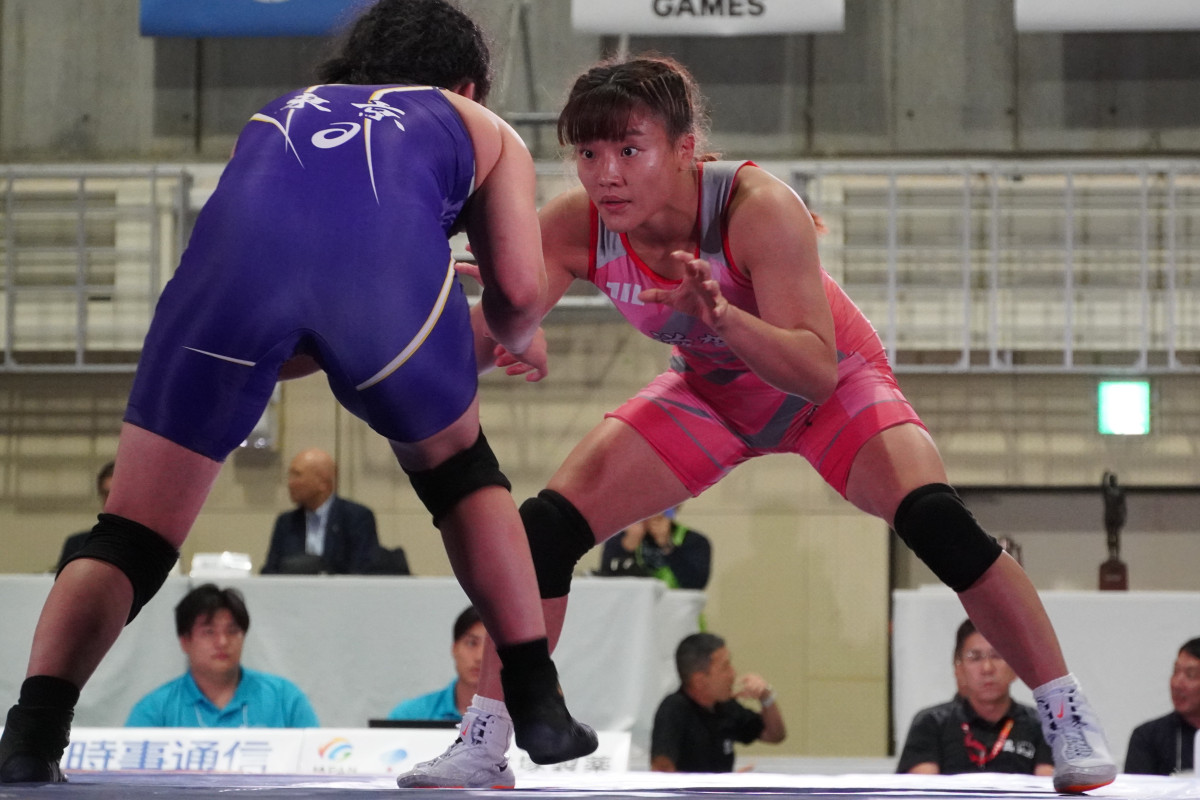 「わたSHIGA輝く国スポ(第79回国民スポーツ大会)」のレスリング競技が9月30日、栗東市民体育館(栗東市川辺)で行われ、滋賀県の成國大志選手と屶網(なたみ)さら選手が優勝した。