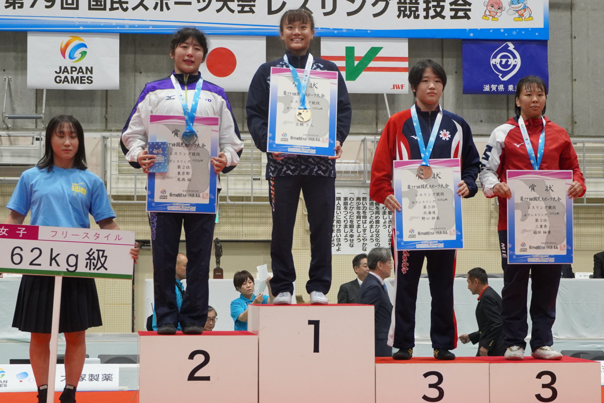 「わたSHIGA輝く国スポ(第79回国民スポーツ大会)」のレスリング競技が9月30日、栗東市民体育館(栗東市川辺)で行われ、滋賀県の成國大志選手と屶網(なたみ)さら選手が優勝した。