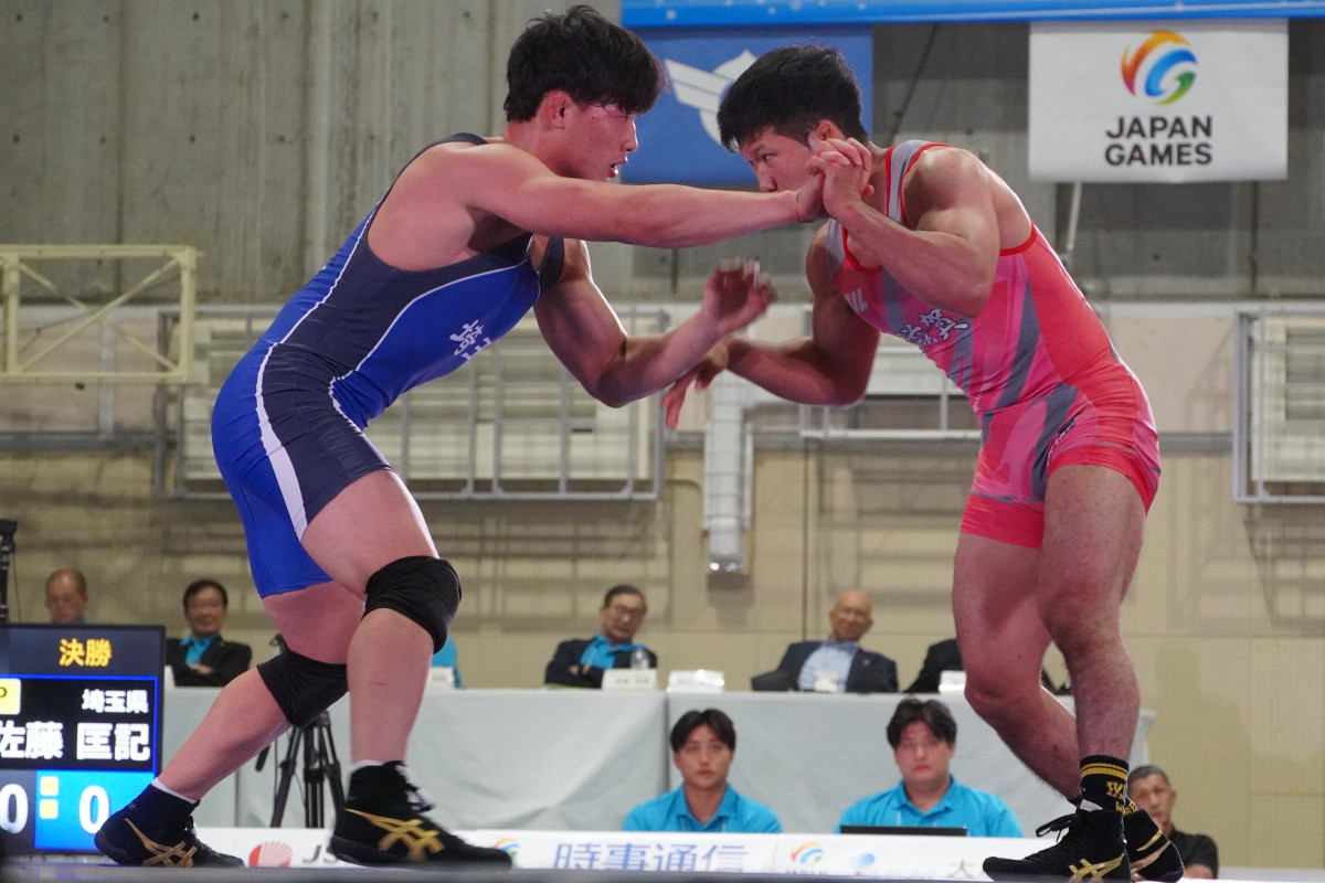 「わたSHIGA輝く国スポ(第79回国民スポーツ大会)」のレスリング競技が9月30日、栗東市民体育館(栗東市川辺)で行われ、滋賀県の成國大志選手と屶網(なたみ)さら選手が優勝した。