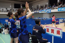 「わたSHIGA輝く国スポ(第79回国民スポーツ大会)」の卓球競技が10月2日、野洲市総合体育館(野洲市冨波甲)で行われ、成年女子の部で滋賀が準優勝した。