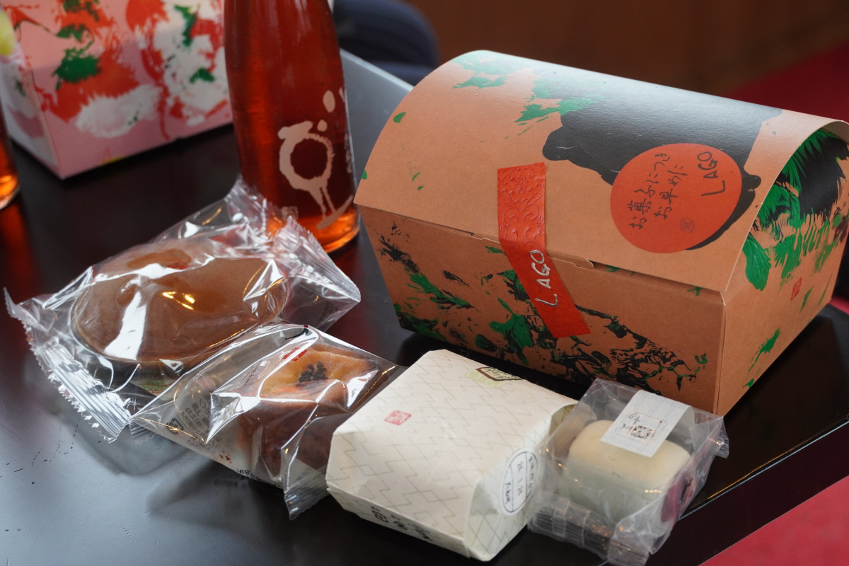 近江八景をイメージした和菓子などをLAGO大津限定ボックスに入れて進呈