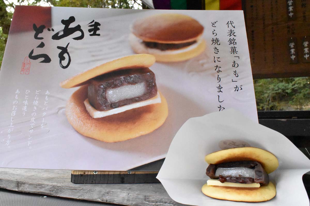 どら焼きの皮で「あも」とバターを挟んだ「生あもどら」を280円で販売