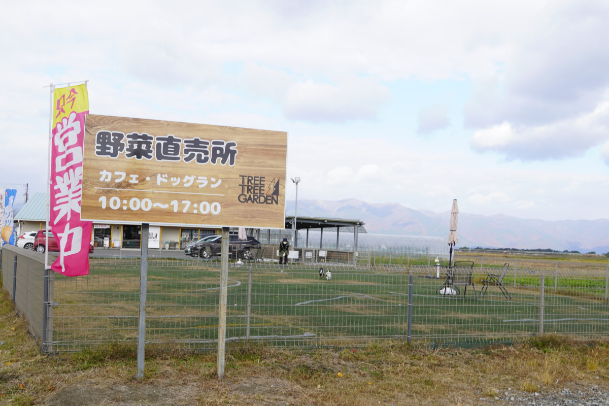 直売所「TREE TREE GARDEN」にはカフェとドッグランが併設している