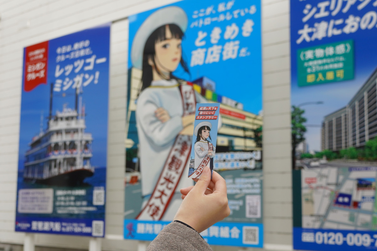 大津市を舞台にした小説「成瀬は天下を取りにいく」と「成瀬は信じた道をいく」ゆかりの地を巡るスタンプラリーの「ときめきコース」が現在、膳所駅周辺で開催されている。