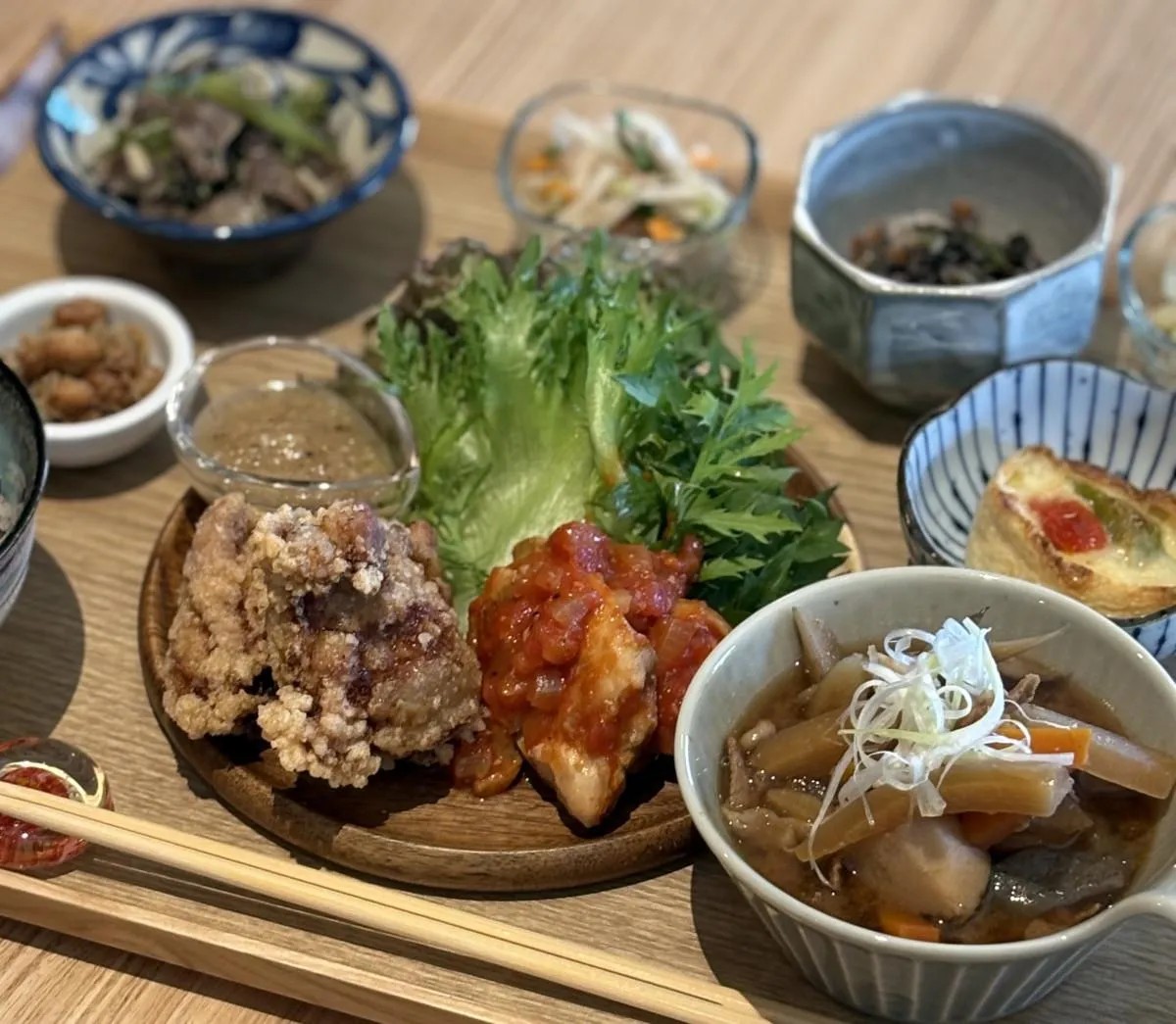 滋賀県産の旬の野菜と鶏肉を使ったランチと、モーニングを提供
