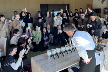 川那辺さんがコーヒーを入れると、参加者が写真を撮影した(写真提供=米安珈琲)