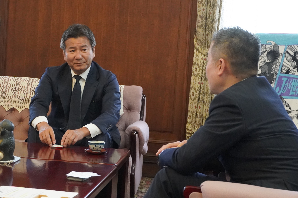 三日月知事と会談する野々村チェアマン