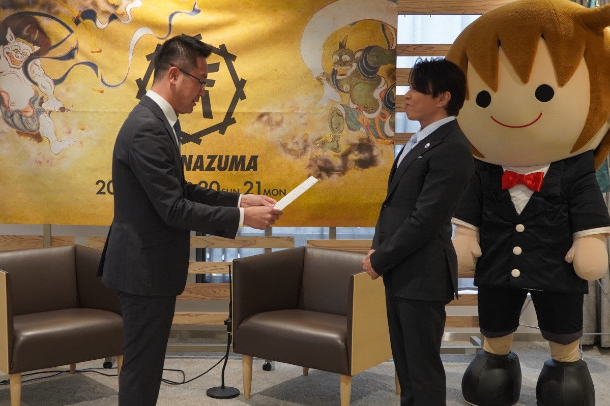 滋賀ふるさと観光大使を務めるアーティストの西川貴教さんが2月2日、「イナズマロックフェス2025」の収益の一部、50万円を守山市に寄付した。
