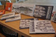守山市在住のアーティスト、スギモトユウコさんの作品展「黒板アート作品展~びわこのサカナ~」が2月17日、守山市立図書館(守山市守山5)内のCafe Gankodo(がんこどう)で始まった。