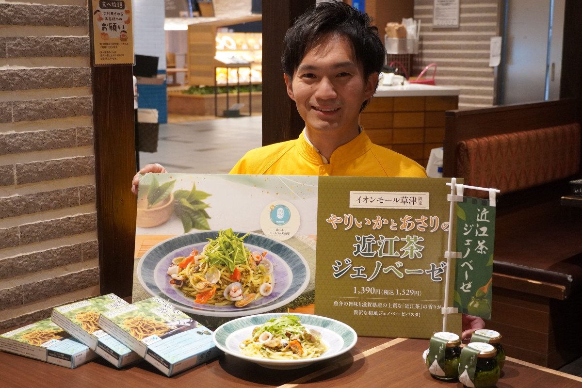 鎌倉パスタ イオンモール草津店(草津市新浜町)で現在、就労支援事業所「ビストロ向日葵(ひまわり)」(下笠町)が製造する「近江茶ジェノベーゼ」を使った期間限定メニューが提供されている。