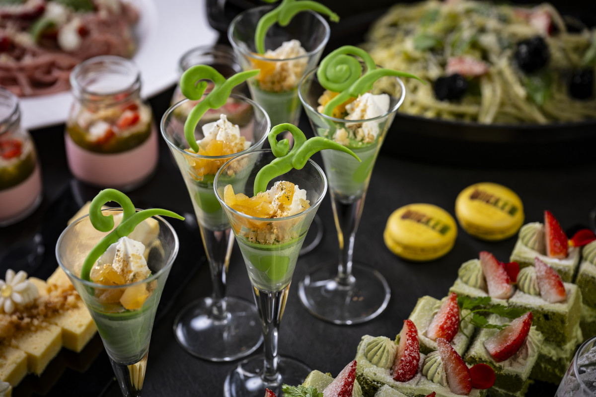 エルファバをイメージした抹茶のヴェリーヌ(写真提供=びわ湖大津プリンスホテル)