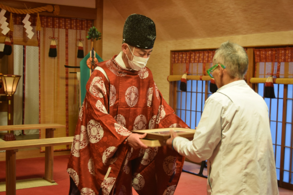 立木神社(草津市草津)で4月7日、境内の風景を描いた絵の奉納が行われた。
