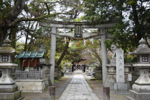 立木神社(草津市草津)で4月7日、境内の風景を描いた絵の奉納が行われた。