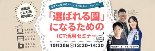 日本ソフト開発株式会社(本社:滋賀県米原市、代表取締役社長:蒲生仙治)、株式会社ディーエスブランド(本社:長崎県長崎市、代表取締役社長:下山大祐)、株式会社リコー(本社:東京都大田区、社長執行役員:大山晃)の3社は、幼稚園・保育園をはじめとする教育機関関係者を対象に、無料オンラインセミナー「保護者の信頼感アップと業務効率化につながる!『選ばれる園』になるためのICT活用セミナー」を2025年10月30日(木)に共催いたします。