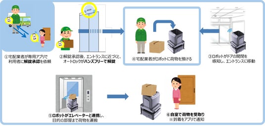 本取り組みは先進的なまちづくりを目指す「Fukuoka Smart East」の一環として実施するもので、スマートフォンを活用して荷物を自室まで自動で配送する仕組みを検証します。宅配業界の人手不足や再配達問題等の課題解決にもつながることが期待されます。