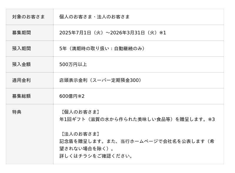 滋賀銀行(本店・大津市、頭取・久保田真也)は、2025年7月1日(火)~2026年3月31日(火)まで、「びわ湖ブルー預金」の募集を行っております。