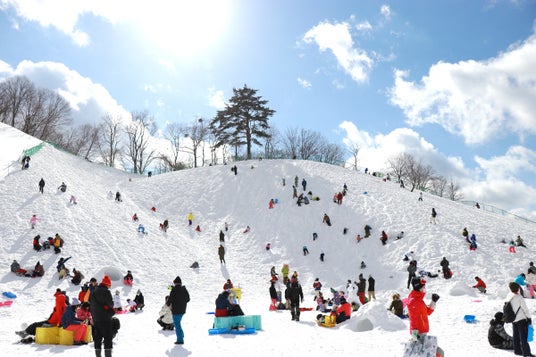 「日本最大級のキッズパーク」には「雪の斜面を登って遊べる」の「大人気のやまあそびエリア」を完備。