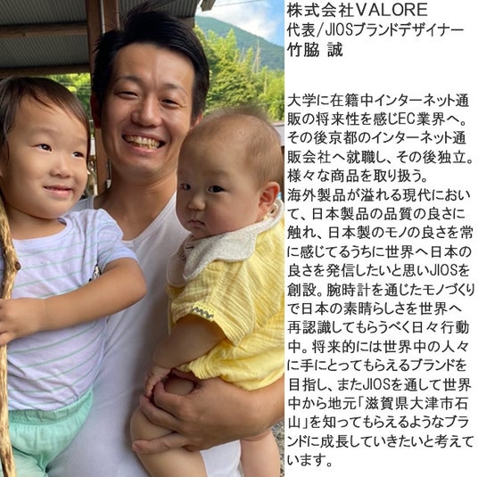 日本の時計のはじまりでもある水時計などを生み出した「滋賀県大津市の石山」に由来し【Japan,Ishiyama,Otsu,Shiga】の頭文字から名付けられた腕時計の新ブランドJIOS。JIOSの作る高品質で高い精度の日本製の腕時計を通じて日本のモノづくり、さらにはJIOSの地元地域を世界へ発信し地域ブランドの確立と、腕時計ブランドとしての成長の二刀流を目指す新しい取り組みを行います。腕時計が地元地域と世界をつなぐ懸け橋となるよう日々丁寧で正確な時計造り、モノづくりを行っています。
