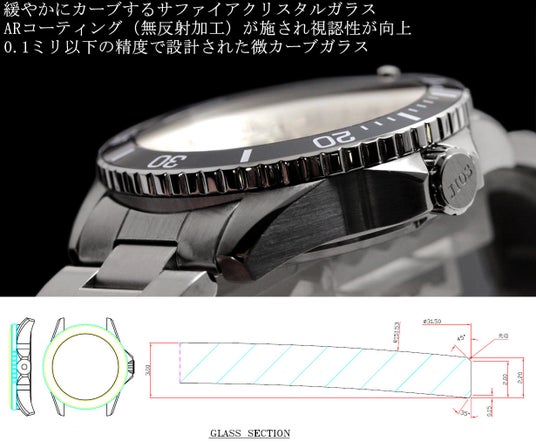 高い視認性の確保を可能にしたスイス製スーパールミノヴァ、高水準の技術が要求されるカーブサファイアクリスタルガラス、裏ぶたには名入れ刻印も可能に、さらなるこだわりや魅力は是非プロジェクトページをご参照くださいませ。