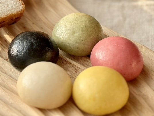 五行に対応した5色の生地を組み合わせたパンで、一口ごとに異なる色と風味が楽しめ、見た目からも五行のエネルギーを感じられる逸品です。