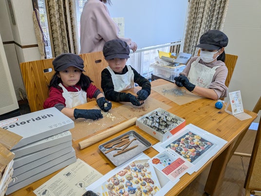 お仕事体験中のキッズ(クッキー生地の実演・体験提供)