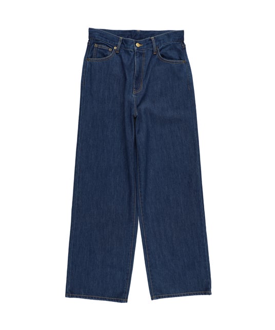 ワークジャケットとセットで楽しめる、ワイドストレートデニムです。ウエストはドローコードで締めることができるので、ベルトレスでも着用可。ハイウエスト×程よいゆとりで、Tシャツをインするだけでこなれた印象に。街でもフィールドでも頼れる一本です。