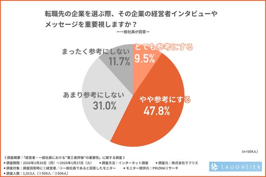 株式会社ラフリエ(所在地:大阪府大阪市、代表取締役:正木 桂司)は、1.経営者/2.一般社員を対象に、「経営者・一般社員における“第三者評価”の重要性」に関する調査を行いました。