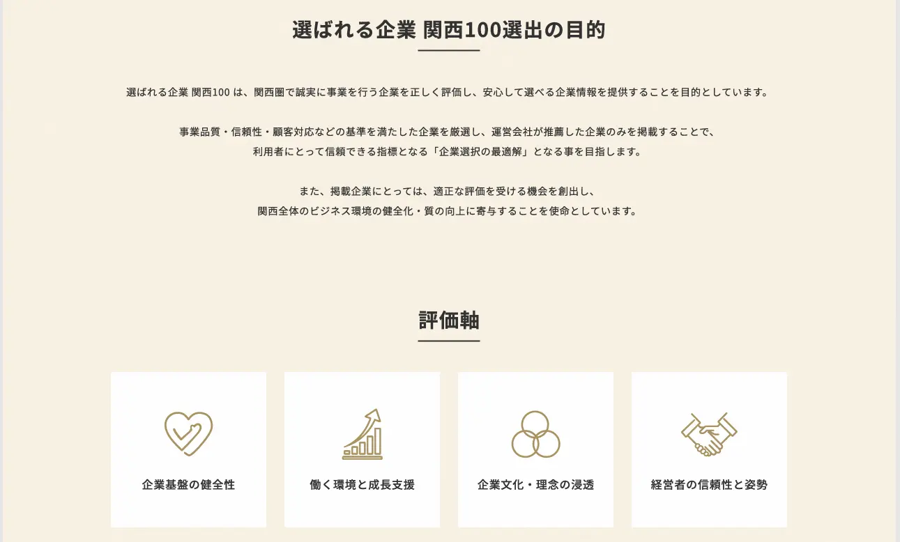 そんな「関西の優良企業、素敵な経営者の方々を世の中に少しでもご紹介したい!」想いから優良企業の中からさらに厳選選出させていただいた100社を「選ばれる企業-関西100-」と題し、ご紹介することが決まりました。