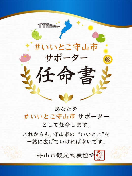 本プロジェクトの取り組みの一環として、守山市の魅力的なSNS投稿をサイト掲載させていただいている方々を対象に、「#いいとこ守山市サポーター」の任命を行います。
