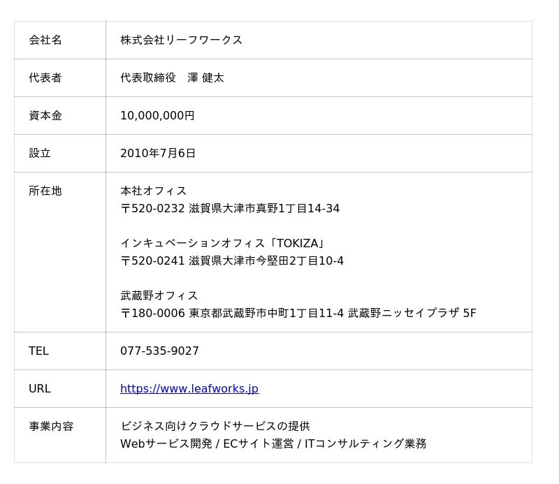 リリース発行企業:株式会社リーフワークス