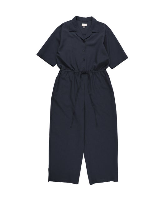 通気性抜群のドットエア(R)素材で仕立てた、ウィメンズのオールインワンです。上半身はゆとりのある開襟デザインで、ボトムもリラックス感を引き継いだワイドシルエット。軽量でストレッチが効き、吸汗速乾性も備えているので、暑い季節も快適に過ごせます。