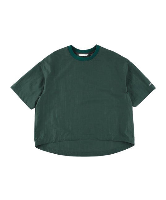 通気性の高いドットエア(R)を用いた、カジュアルで取り入れやすい布帛の半袖Tシャツです。湿気や熱気を逃しやすいゆとりのあるパターン設計を採りつつ、裾のドローコードを絞ればコクーンシルエットにアレンジも可能。シンプルなのに変化がつく一枚です。