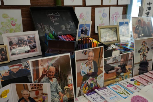 笑顔あふれる日々の写真や愛用品が並び、故人の温かな人柄と豊かな時間を感じさせる展示。