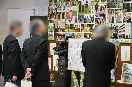 思い出の写真や愛用品の前で足を止め、故人の人生に静かに思いを馳せる参列者の姿。